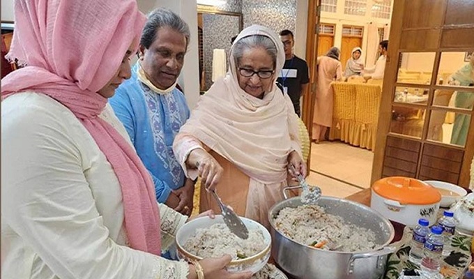 গ্রামের বাড়িতে ইলিশ পোলাও রান্না করলেন প্রধানমন্ত্রী