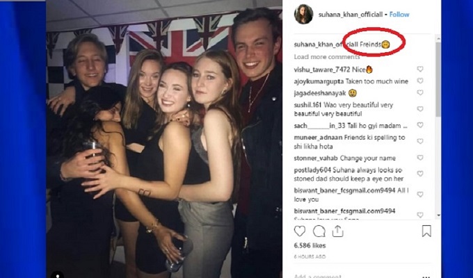 এ ছাড়া ছবির ক্যাপশানে সুহানা ভুল বানানে ইংজেীতে ফ্রেন্ডস শব্দটি লিখেছেন। যে কারণে কেউ তাকে সঠিক বানান লেখার পরামর্শ দিয়েছেন, কেউ বা আবার ফ্রেন্ডস বানান সুহানা জানেন না বলে কটাক্ষ করেছেন।