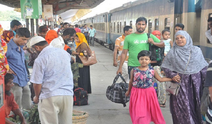 ঈদ উপলক্ষে দুপুর ১২টায় মহানগর এক্সপ্রেস, বিকাল ৩টায় গোধূলি এক্সপ্রেস ও বিকাল ৫টায় মেঘনা এক্সপ্রেস ছেড়ে যাচ্ছে গন্তব্যের উদ্দেশে।’