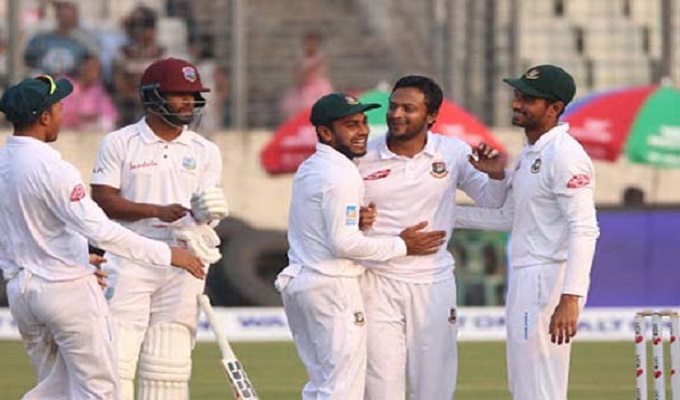 এর আগে প্রথম টেস্টে জহুর আহমেদ চৌধুরী স্টেডিয়ামে বাংলাদেশ ৬৪ রানে ওয়েস্ট ইন্ডিজকে পরাজিত করে।