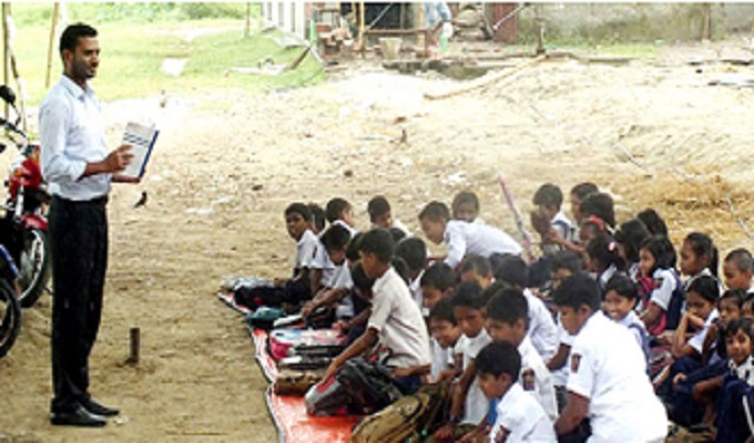 ক্লাসরুম নেই, খোলা আকাশের নিচে পড়াশুনা
