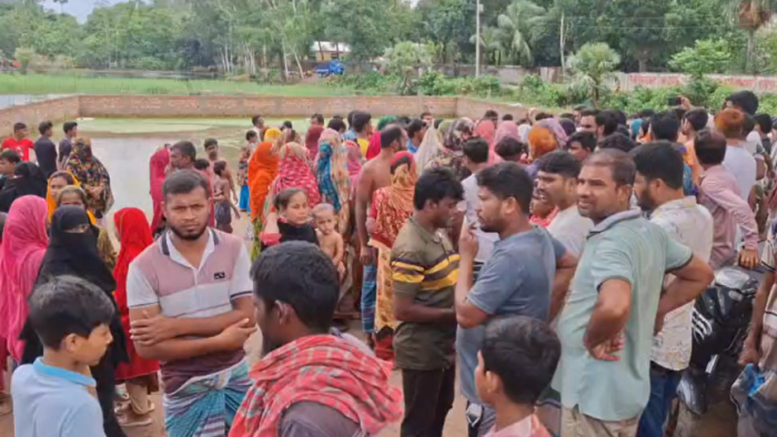 গাজীপুরে পানিতে ডুবে নিহত শিশুদের দেখতে এসেছে স্থানীয়রা।