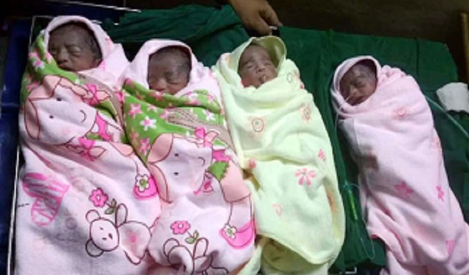 নবজাতকদের মধ্যে একটা ছেলে ও তিনটা মেয়ে। ছেলেটির ওজন ১ কেজি ৮শ গ্রাম, মেয়েদের একটির ওজন ১ কেজি ৬শ গ্রাম ও অন্য দুটির ১ কেজি ৪শ গ্রাম।