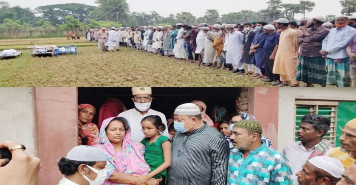 আজ মঙ্গলবার (৪ মে) সকাল ৯টায় পারোখালী ফাঁকা মাঠে সবার জানাজা অনুষ্ঠিত হয়। এমন শোকাবহ পরিস্থিতিতে জানাজায় ছিল সর্বস্তরের মানুষের ঢল। জানাজার পর পারিবারিক কবরস্থানে মনিরের মায়ের পাশে সারিবদ্ধভাবে সমাহিত করা হয় মনির ও তার স্ত্রী-সন্তানদের। আর তাদের প্রাণে বেঁচে যাওয়া সন্তান মীম ঢুকরে কাঁদছে মা-বাবার জন্য। পারোখালী গ্রামের একই বাড়িতে সারিবদ্ধভাবে পাঁচটি মরদেহ দাফন ছিল এটাই প্রথম।