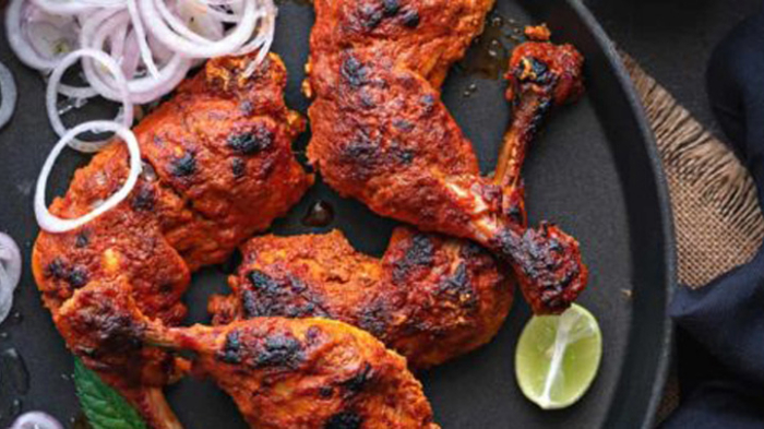 মুরগির ভালোভাবে ধুয়ে টক দইয়ের সাথে, আদা, রসুন, মরিচের গুঁড়া, ভিনেগার, লবণ ও চিনি একসঙ্গে মিশিয়ে ১৫ মিনিট ম্যারিনেট করুন। একটি ফ্রাই প্যানে ম্যারিনেট করা টুকরোগুলো ভালো করে ভেজে নিন। এরপর চিকেন চুলার আগুনে এক মিনিট পুড়িয়ে নিন।