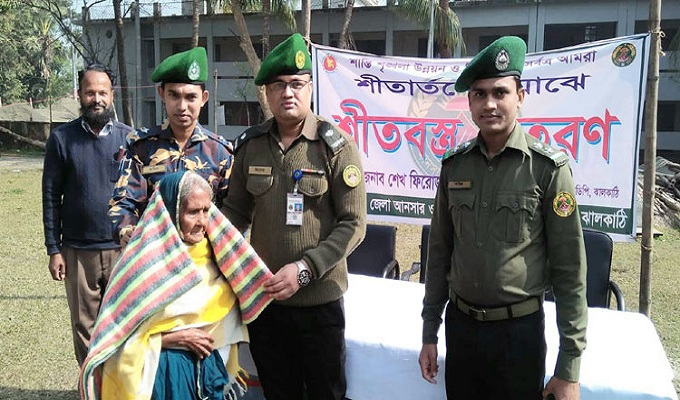 ঝালকাঠিতে শীতার্তদের মাঝে কম্বল বিতরণ করেছে আনসার ভিডিপি