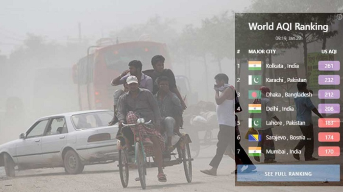 আইকিউএয়ারের দেওয়া তথ্যে দেখা যায়, দূষিত শহরের তালিকায় আজ প্রথম স্থানে আছে পাকিস্তানের লাহোর। বায়ুর মান ১৭৪, যা অস্বাস্থ্যকর হিসেবে বিবেচিত। তালিকায় দ্বিতীয় অবস্থানে থাকা ভারতের দিল্লির স্কোর ১৭১। তৃতীয় স্থানে থাকা সৌদি আরবের রাজধানী রিয়াদের বায়ুর স্কোর ১৬৫। চতুর্থ স্থানে রয়েছে চিলির সান্টিয়াগো (বায়ুর মান ১৬৫)। দূষণে পঞ্চম, ষষ্ঠ ও সপ্তম স্থানে রয়েছে যথাক্রমে চীনের সাংহাই, কাতারের দোহা ও বাহারাইনের মানামা।