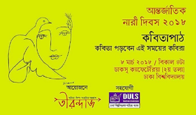 ৮ মার্চ বিকেল ৪টায় ঢাকা বিশ্ববিদ্যালয়ের ডাকসু ক্যাফেটরিয়ার দ্বিতীয় তলায় এ কবিতা পাঠের আসর বসবে।