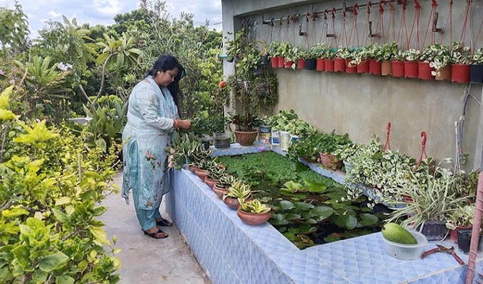 নিজের ছাদ বাগানে তনিমা আফরিন।
