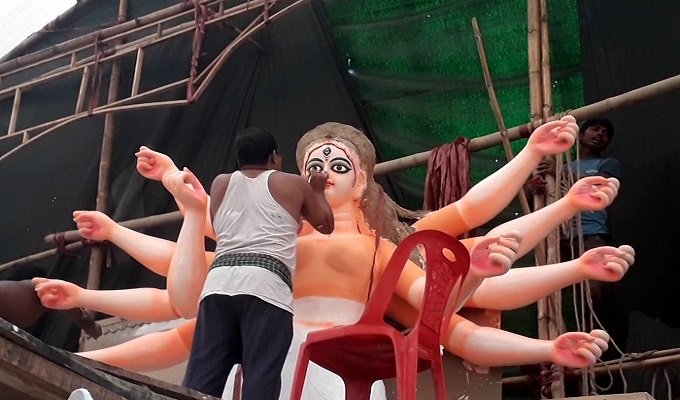 প্রতিমা শিল্পীরা একসাথে অনেকগুলো প্রতিমার কাজ শুরু করায় কোথাও চলছে দোমাটির কাজ, কোথাও আবার রঙ্গের কাজ শুরু হয়েছে। রাত-দিন কাজ করে চলেছেন শিল্পীরা, পূজা শুরুর আগেই তাদের সব কাজ শেষ করতে হবে ।