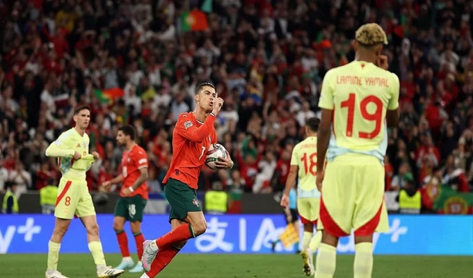 তীব্র প্রতিদ্বন্দ্বিতাপূর্ণ ম্যাচে স্পেনকে হারিয়ে উয়েফা নেশনস লিগের শিরোপা নিজের ঘরে তুলল পর্তুগাল। মিউনিখের আলিয়াঞ্জ অ্যারেনায় টাইব্রেকারে ৫-৩ গোলে স্পেনকে হারিয়েছে ক্রিস্টিয়ানো রোনালদোর দল।
