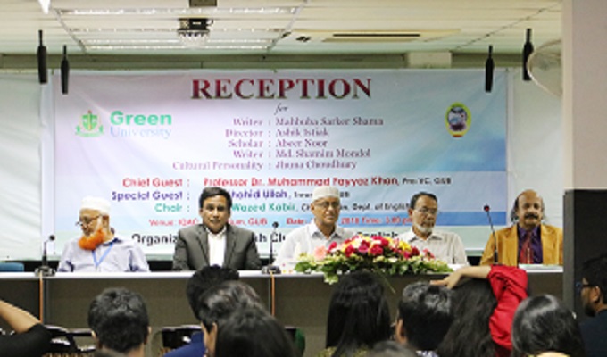 বুধবার গ্রিন বিশ্ববিদ্যালয়ের আইকিউএসি অডিটোরিয়ামে ইংলিশ ক্লাব আয়োজিত এক অনুষ্ঠানে তাদের এই সংবর্ধনা দেওয়া হয়। সংবর্ধনাপ্রাপ্তরা হলেন-নাট্যব্যক্তিত্ব ঝুনা চৌধুরী, সহকারী অধ্যাপক শামিম মন্ডল, মাহবুবা হক শ্যামা, আবির নুর ও আশিক ইশতিয়াক।
