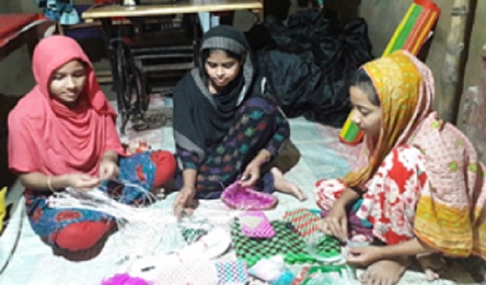সাথীর স্বামী শফিকুল ইসলাম গ্রামের পল্লী চিকিৎসক। সাথী সন্তান পালনের পাশাপাশি একদিকে রং-বেরংয়ের পুতি দিয়ে মেয়েদের ভ্যানিটি ব্যাগ, পার্টস (হাত ব্যাগ) ও ফুলদানি তৈরি করে বিক্রি করছেন অপরদিকে আগ্রহী নারীদের প্রশিক্ষণও দিচ্ছেন। একই সঙ্গে সংসারে অর্থনৈতিক সহযোগীতা করছেন।