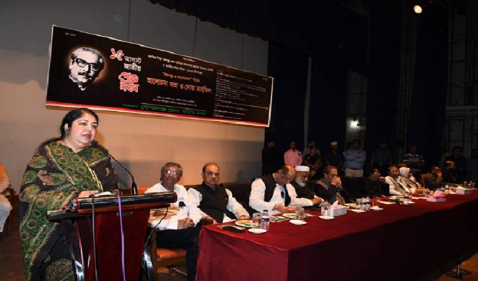আজ সোমবার রাজধানীর জাতীয় জাদুঘর মিলনায়তনে গোপালগঞ্জ জেলা সমিতি ঢাকা আয়োজিত জাতীয় শোক দিবস-২০১৯ উপলক্ষে “বঙ্গবন্ধু ও বাংলাদেশ” শীর্ষক আলোচনা সভা ও দোয়া মাহফিল অনুষ্ঠানে প্রধান অতিথির বক্তব্যে এ কথা বলেন তিনি।