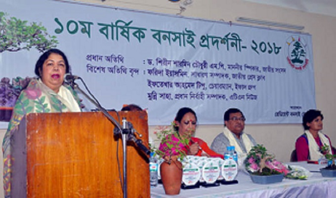 শিরীন শারমিন চৌধুরী বলেন, মুক্তিযুদ্ধে শহীদদের স্মরণে প্রধানমন্ত্রী শেখ হাসিনা ঘোষিত দেশব্যাপী ৩০ লাখ বৃক্ষ রোপন কর্মসূচি জনগণকে বৃক্ষরোপনে অনুপ্রানিত করেছে। সেক্ষেত্রে বনসাই শিল্পও পিছিয়ে নেই।
