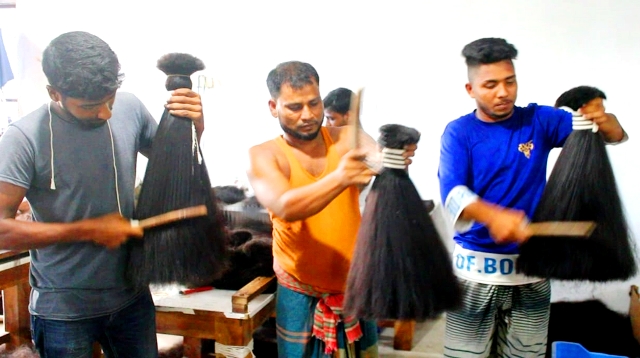 কারখানাগুলো ঘুরে দেখা গেছে, প্রথমে লোহার কাটা বা কাঁচি দিয়ে জড়ানো চুলগুলো ছাড়িয়ে লম্বা করে গোছা করা হয়। এরপর গোছাগুলো শ্যাম্পু দিয়ে একাধিকবার ধুয়ে রোদে শুকিয়ে নেয়া হয়। শুকানোর পর ছোট বড় বাছাই করা হয়। এরপর গাডার দিয়ে বেঁধে ছোট বড় আলাদা করে প্যাকেটজাত করে আনা হয় ঢাকায়। এখান থেকে দেয়া হয় বায়ারদের।