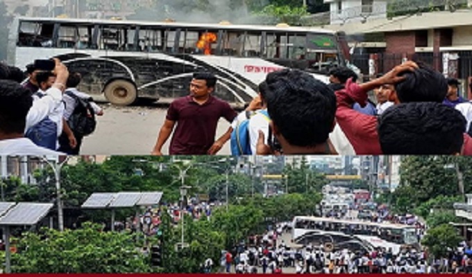 রাজধানীর কুর্মিটোলা এলাকায় জাবালে নূর বাসের চাপায় দুই শিক্ষার্থী নিহত হওয়ার প্রতিবাদে মঙ্গলবার বিভিন্ন শিক্ষা প্রতিষ্ঠানের শিক্ষার্থীরা রাজধানীর বিভিন্ন সড়ক অবরোধ করে বিক্ষোভ করেছে। এ সময় শিক্ষার্থীরা ভাঙচুর,বাসে আগুন দিয়েছে। পরিস্থিতি নিয়ন্ত্রণে পুলিশের লাঠিচার্জেরও ঘটনা ঘটে। অনেক সড়কে যান চলাচল বন্ধ হয়ে যায়।