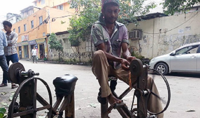দা-বটি ধার দেবেন...দা-বটি...। এলাকায় প্রবেশ করেই শানম্যান জোরে আওয়াজ তুলছেন, দা-বটি ধার দেবেন...দা বটি...। শুধু দা-বটিই নয়, সঙ্গে রয়েছে শীলপাটাও।