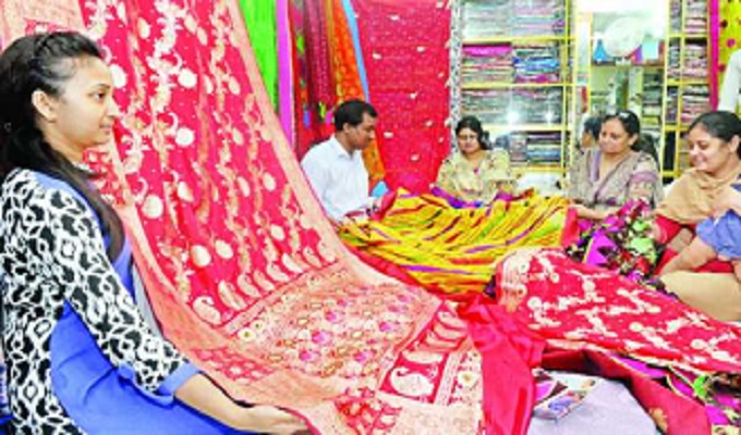 শাড়ির দোকানে উপচেপড়া ভিড়