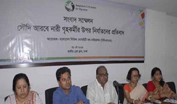 সংবাদ সম্মেলনে বাংলাদেশ সিভিল সোসাইটি ফর মাইগ্রেশন (বিসিএসএম) এর পক্ষ থেকে একটি লিখিত বিবৃতি দেওয়া হয়। তাতে লেখা আছে, ভাগ্য বদলাতে নারীরা বিদেশে যাচ্ছেন একটু সুখের আশায়। সেখানে তাদের কপালে জুটছে ভয়াবহ শারীরিক, মানসিক এবং যৌন নির্যাতন। সৌদি আরব থেকে নির্যাতিত হয়ে দেশে ফেরা এই নারীদের সংখ্যা বাড়ছেই। চলতি বছরের জানুয়ারি থেকে এখন পর্যন্ত নির্যাতিত হয়ে প্রায় হাজার খানেক নারী গৃহকর্মী দেশে ফিরেছেন। দেশে ফেরার অপেক্ষায় সেখানে সেফ হাউজ ও বিভিন্ন জেলে আছেন আরও অনেকে।