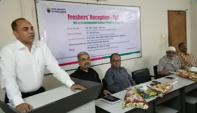 স্টেট ইউনিভার্সিটি অব বাংলাদেশ (এসইউবি)-এর পরিবেশ বিজ্ঞান বিভাগে ফল-২০১৭ সেমিস্টারে নবীন বরণ অনুষ্ঠিত হয়েছে।