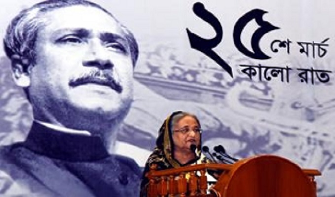 ২৫ মার্চের নির্মমতার চিত্র তুলে ধরে প্রধানমন্ত্রী বলেন, আমাদের বাড়ির আশপাশে সব বাড়িঘর পুড়িয়ে দেয়। জাতির পিতা স্বাধীনতার ঘোষণা দেয়ার সঙ্গে সঙ্গে আমাদের ৩২ নম্বরের বাড়িতে আক্রমণ করে। বঙ্গবন্ধু শেখ মুজিবুর রহমানকে গ্রেফতার করে নিয়ে যায়।