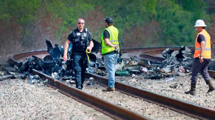 দমকল কর্মকর্তারা জানান, বিমানটি বিধ্বস্ত হয়ে একটি গাড়িকে রেললাইনের ওপরে ধাক্কা দিয়েছে। এর ফলে লাইনটি বন্ধ হয়ে গেছে।