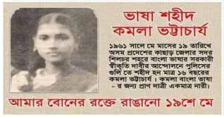 মায়ের মুখের ভাষা বাংলাকে রক্ষা করতে গিয়ে প্রাণ দেন কিশোরী কমলা ভট্টাচার্য। ১৯৬১ সালের আজকের দিনের (১৯ মে) কথা। ভারতের আসাম রাজ্যের বরাক উপত্যকার কাছাড় জেলার শিলচরে বাংলা ভাষাকে রাজ্যের সরকারি ভাষা হিসেবে স্বীকৃতি আদায়ের আন্দোলন চলছে।